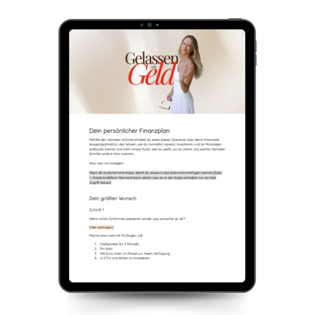 Dein persönlicher Plan für mehr finanzielle Sicherheit zum Selbstausfüllen. Einfach strukturiert und auf deine aktuelle Lebensrealität abgestimmt.